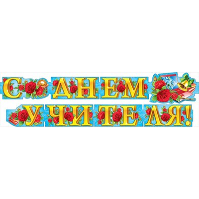 В первые выходные октября отмечается день Учителя! Мы поздравляем с этим праздником всех преподавателей! Надпись состоит из двух бло ков, их можно расположить на школьной доске или в небольшом актовом зале. Общая длина гирлянды 290 см.